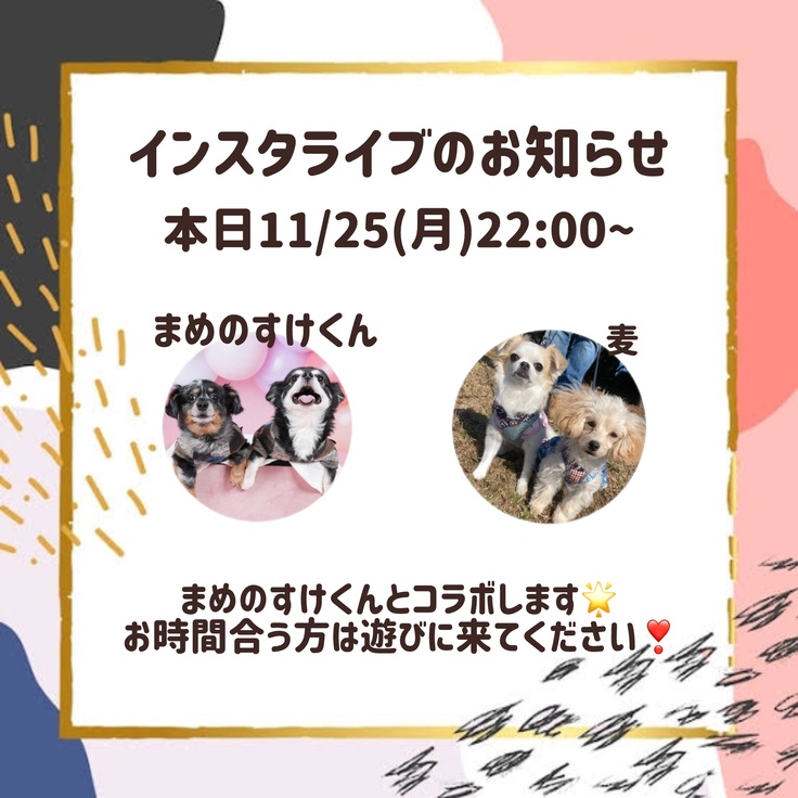 本日11/25(月)22:00〜インスタコラボライブします🎤