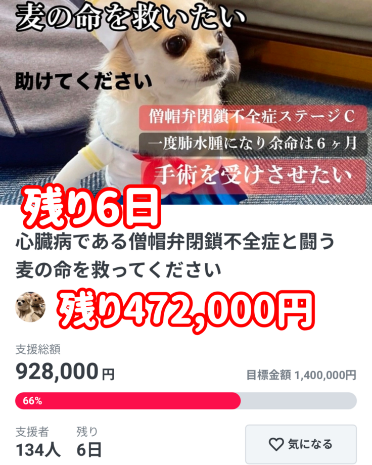 愛犬の心臓の手術が決まりました!少しだけ手助けしてもらえませんか?