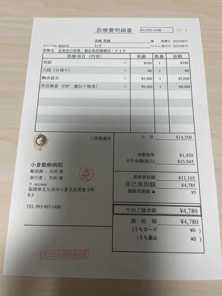この時点ではまだFIPの診断は確定して