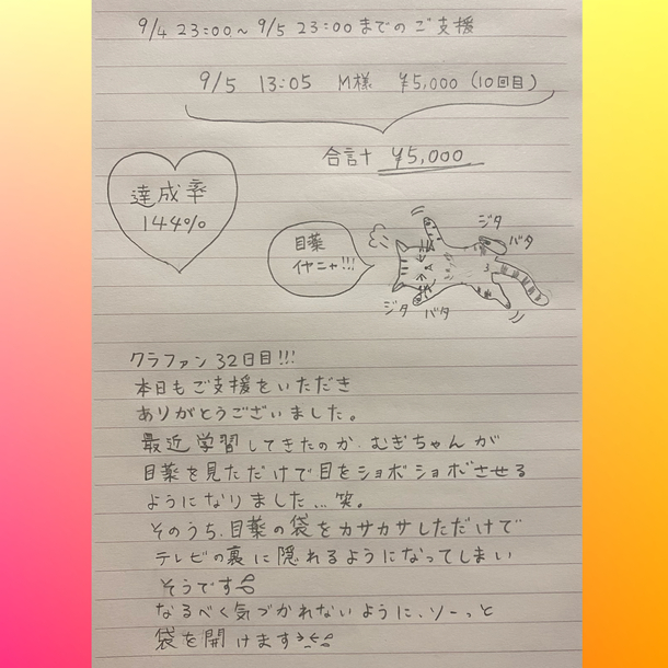 9/4 23:00〜9/5 23:00までのご支援🍀