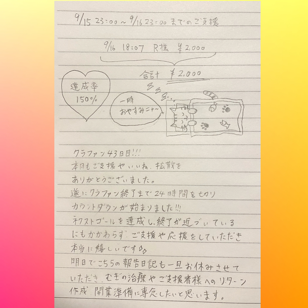 9/15 23:00〜9/16 23:00までのご支援🍀