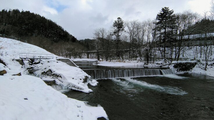 トマムから占冠中央へ向かう途中にある、鵡川の落差工です。