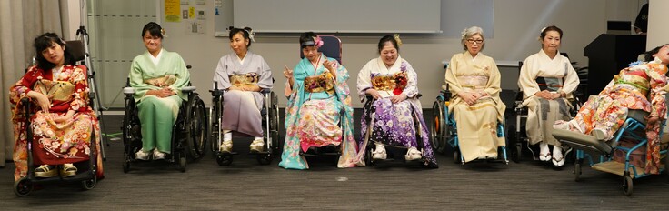 たくさんの方から、ご支援、ご協力いただき車椅子に座ったままで簡単に着られる、着物10着を