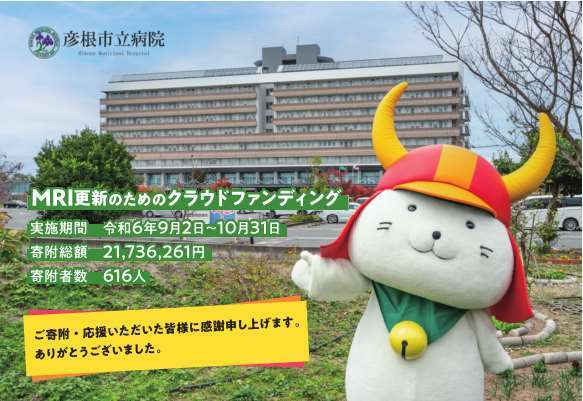 このクラウドファンディングを通して、皆さまの応援のお言葉には大変勇気づけられるとともに、地域医療を支える彦根市立病院への皆さまの信頼を改めて感じることができました。その信頼に応えるためにこれからも私たちは地域医療の向上を目指し、安定した医療を皆さまに提供できるよう、より一層の努力を重ねて参ります。