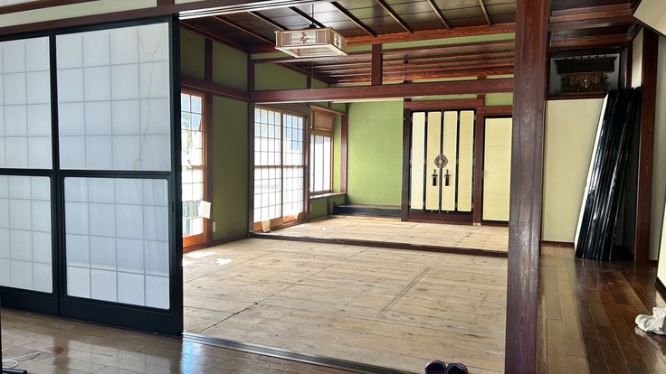 奥の仏間と床の間があった壁を抜き、裏庭に通じるようになりました