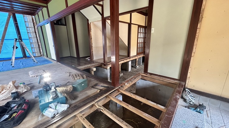 大きな工事はワイケイホームに依頼し、解体・土間工事・屋根の取り付けが進んでおります。