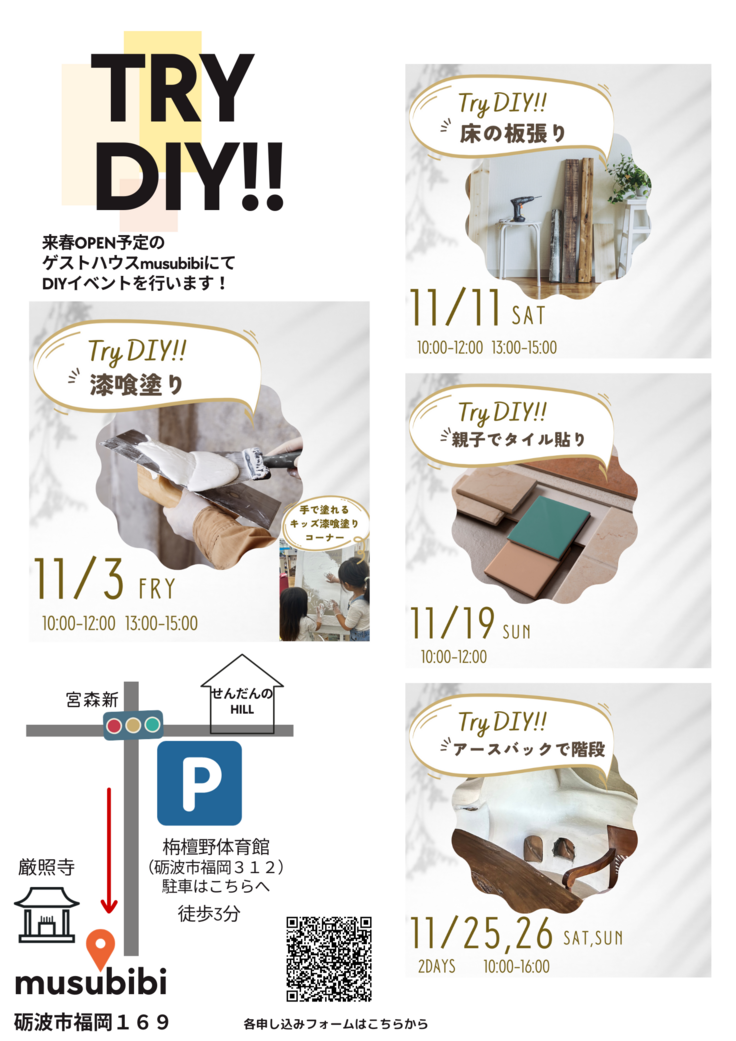 半分はセルフビルドで行いますので、11月からはDIYイベントが始まります!!