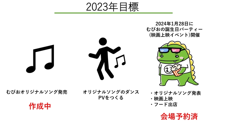むびおは世界のスーパースターになっていき、より多くの人にHAPPYを届ける存在になっていきます。