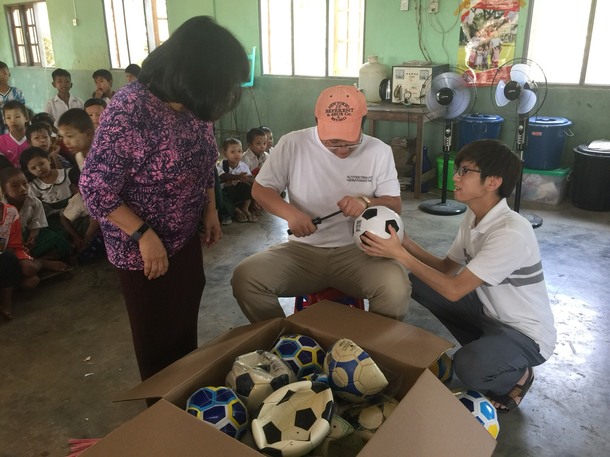 2月21日、ヤンゴン郊外のDapain Shogakkoにサッカーボール30球と空気入れを寄付しました。
