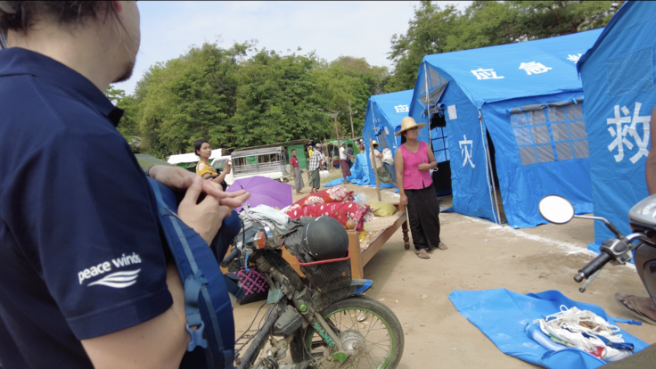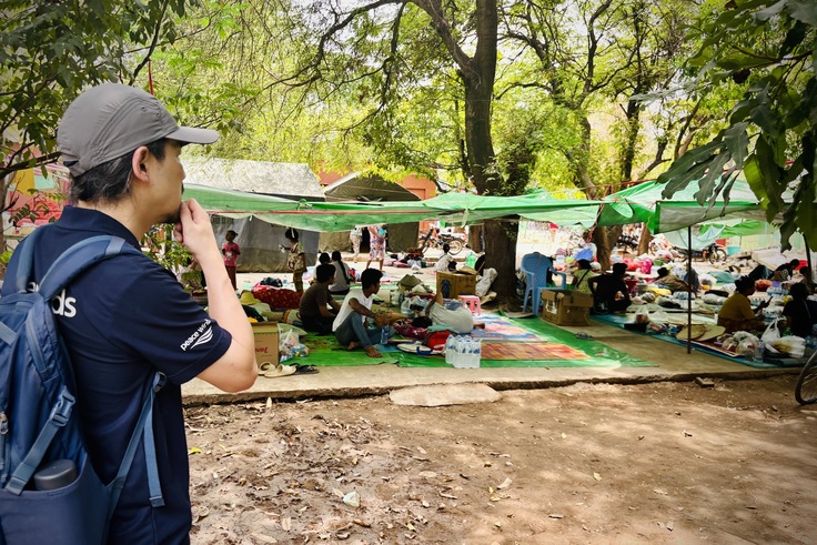 ピースウィンズが現在医療支援を行っている臨時診療所もこの避難所の横にあります。今回のミャンマー地震の緊急支援チームを率いる稲葉医師は「私たちが支援するのは医療だけではない」といいます。