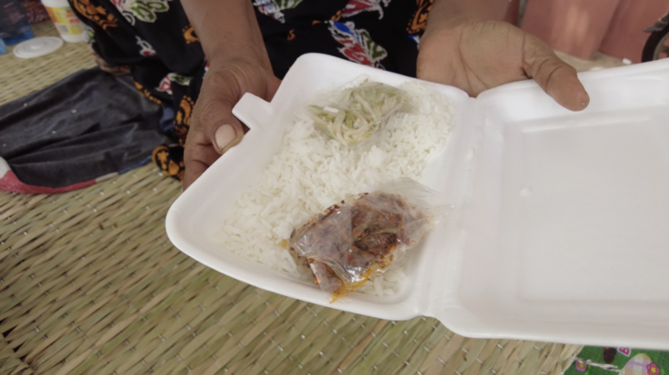 「今は、支援物資を受け取りに行ってきました。お水とお弁当。中身はお米と小さなおかずが数種類です。それからお菓子やインスタントヌードルなどがもらえました」そういってお弁当の中身を見せてくれました。