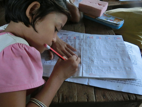先生が黒板に書いた文字を一心不乱にノートに書き取るまなざし、与えられた機会を充分に生かそうとしている子どもたちの学びの場創りを応援してください!皆様の温かいご支援が、ミャンマーの子どもたちに未来を切り開く力と希望を与えます!