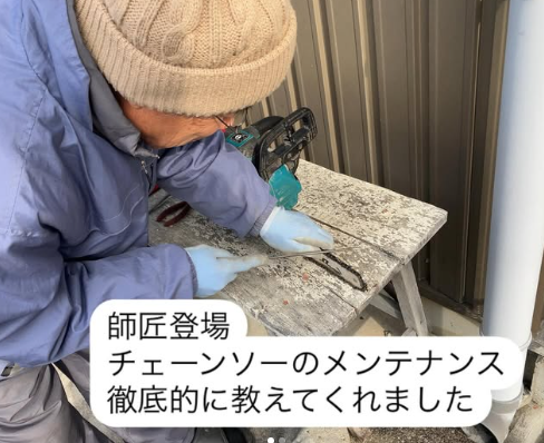 「これだ」と思い、まずは南側の常緑樹の伐採に取りかかりました。チェーンソーの使い方もわからないまま、以前の職場の先輩にオイルの入れ方や目立ての仕方を教わりながら作業しました。何度か危険な目に遭いながらも、怪我なく伐採を終えることができました。その間、奉讃会の方々も伐採を進めてくださいました。今回、寺族で伐採した西側も、奉讃会の方々が後を整備してくださいました。
