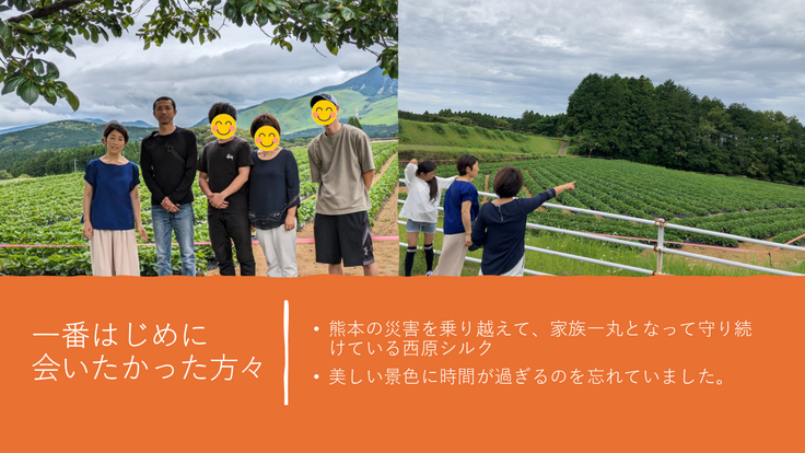 6月の金曜の夜、私たちはフェリーに乗り込み、夜の海を渡りました。船中で眠りにつき、早朝、熊本に到着。まず向かったのは、緑豊かな西原村。そこから再びフェリーに乗り、その日の夕方には帰路へ。翌朝、自宅に戻ると、そのまま法務をこなすという、まさに強行スケジュールでした。
