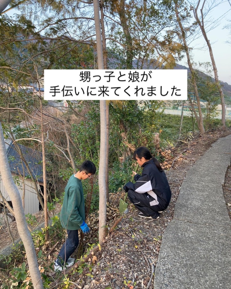 * 山での植樹作業(17時30分~18時30分) - 今日は娘と甥っ子が手伝いに来てくれました。