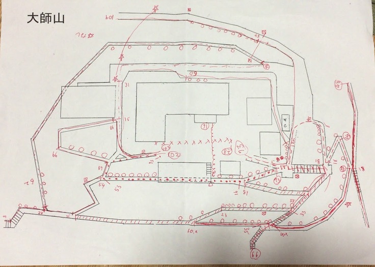 復興を決意した7年前からは、仕事と法務に加え、視察と作業が加わり、寺族にとっては激務の日々となりました。一番最初に行ったのは祠に明かりを灯す計画をしました。ハンマードリルやハツリを初めて使いました。下の画像は、手書きライトアップの計画と2年後の完成した様子です。