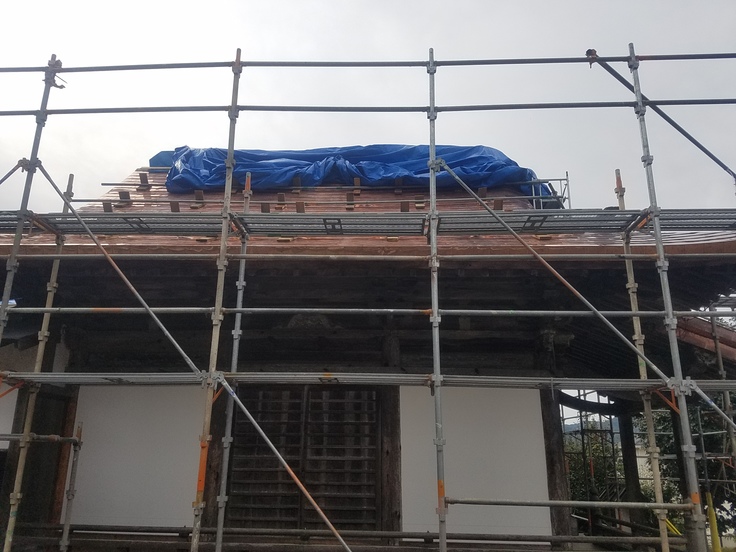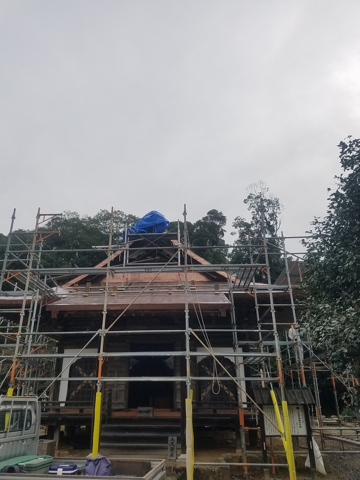 さて、興隆寺妙見社再興プロジェクトの進捗をお伝えします。先日、屋根をはがした際に更新しておりましたが、現在は屋根に銅板が張られている状況になってまいりました。職人さんからは雨漏りがしていた下側は木が腐ったり、さびが出ていたりという報告がありました。本当にギリギリの状況だったことと思います。