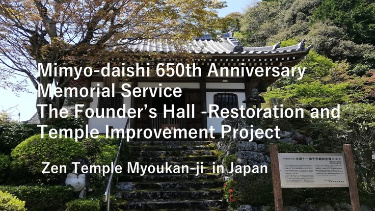 In anticipation of the 650th anniversary of Mimyo-daishi's death in 2027, we have decided to ask for donations through crowdfunding to cover the cost of repairing the Kaisando-Hall, where the memorial service will be held, and other expenses. The reason for this is that the entire cost of the memorial service is a huge financial burden for Myokan-ji, and we would like to ask for your support. We sincerely hope that many people will take advantage of this opportunity to meet and get to know each other.