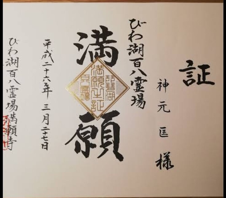 108ヵ寺を参拝すると、申請すると満願証がもらえます。