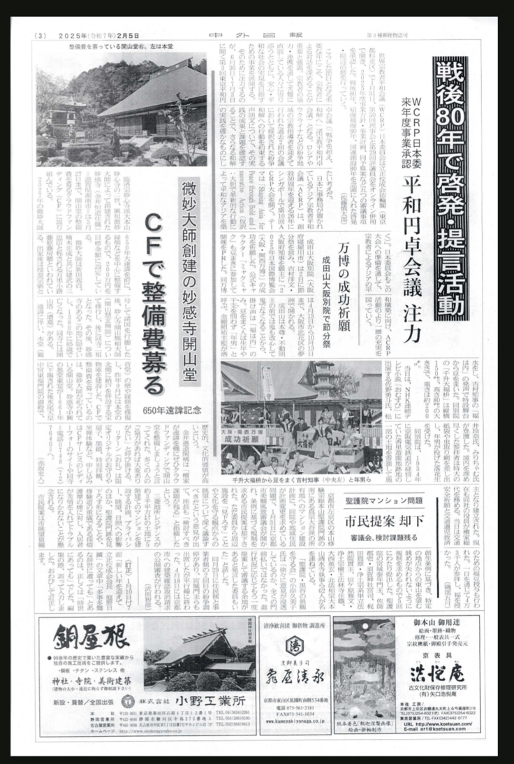 妙感寺のクラウドファンディング挑戦が中外日報で取り上げられました