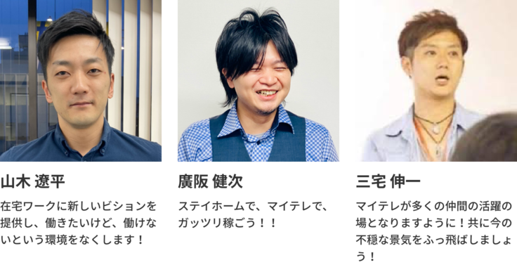 マイテレの構想をお聞かせいただいたときの社長の情熱は今でも鮮明に覚えています。「コロナ失業者を少しでも助けれないか」という強い想いはきっとたくさんの人に届くと信じています。