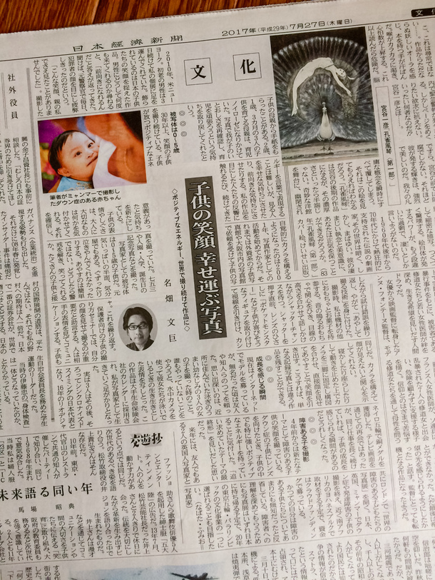本日(7/27)の日本経済新聞文化欄に取材を受けた記事が掲載されました。このプロジェクトのチラシを友人の障害者関連の書籍の出版記念パーティーで配ってもらったら、取材に来ていた日本経済新聞社の記者の目に止まり連絡があり取材を受けました。記事は私が書いたような文面で記者の方が書かれています。プロジェクトの紹介というより、写真家名畑文巨の「歩んできた道」的な内容ですが、最後の方でプロジェクトの記載があります。