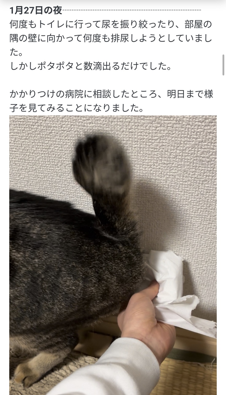 なっちゃんの排尿に異変があった1月27日のことも載せておきます。