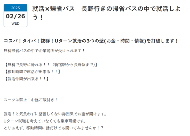 関東から長野に向かってくる就活生に心当たりがあったら、是非教えてあげてください!