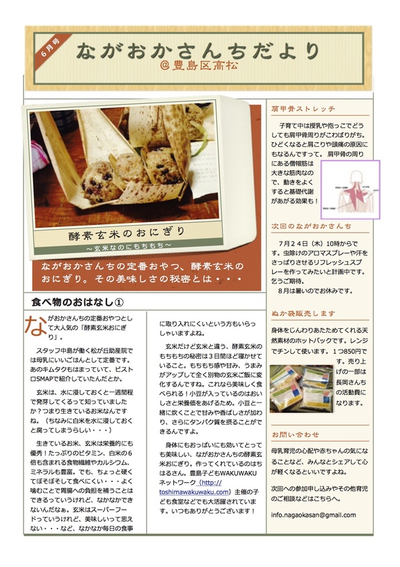 毎月の活動の中で最近のテーマは「食」。ランチまで自分たちで作ってみんなで食べたい!ということで、長岡式酵素玄米を炊いてみんなでおにぎりを作って食べよう!みんなで一緒に食べながらおしゃべりして孤独な子育てから地域での子育てを楽しもう!と計画中です。