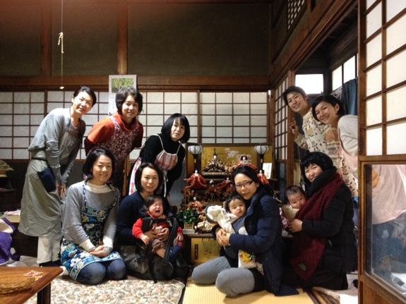 そして、みんなでほおばってハイチーズを忘れてしまい、全体集合写真も忘れてしまい、だいぶみんなが帰ってしまってから慌てて雛人形の前で写した写真です。
