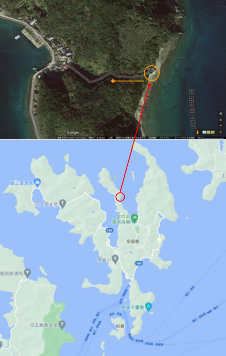 ▼阿古木隠れキリシタンの里の地図(五島市奈留町)<出典:Google Map>