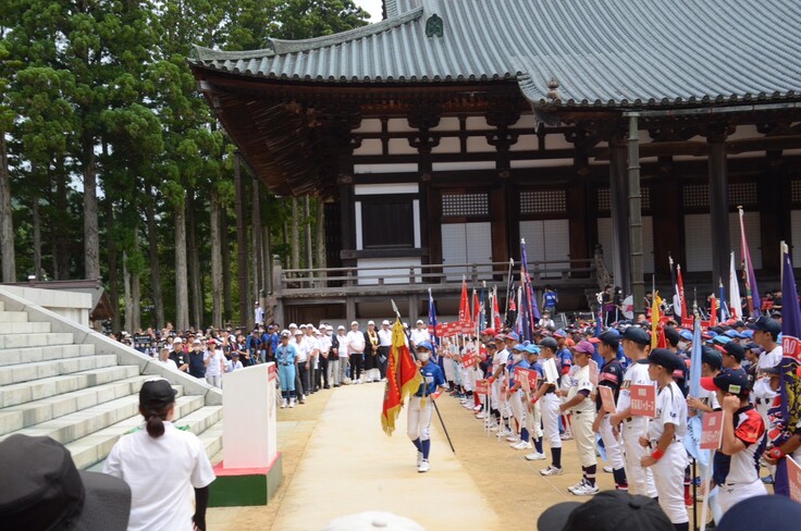 開会式ではみんなで凛々しく行進。優勝旗返還をしました。