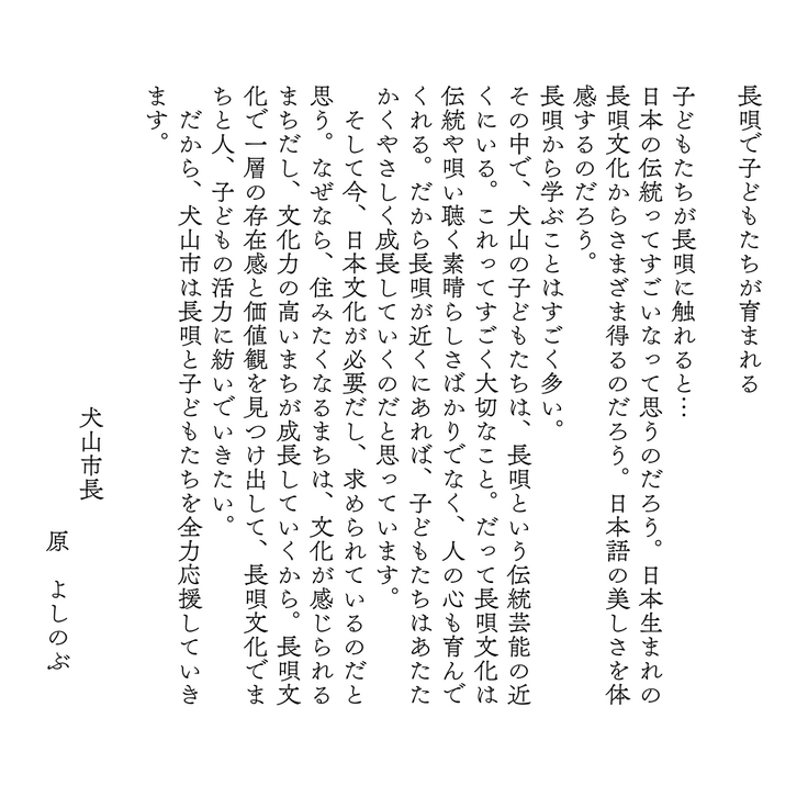 犬山市長にも応援メッセージをお願いしました。