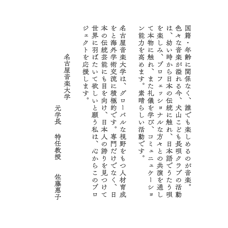 地元名古屋より西洋音楽、邦楽といった枠組みをこえ本クラブにお寄せ下さった温かいお言葉、大変有難く存じます。