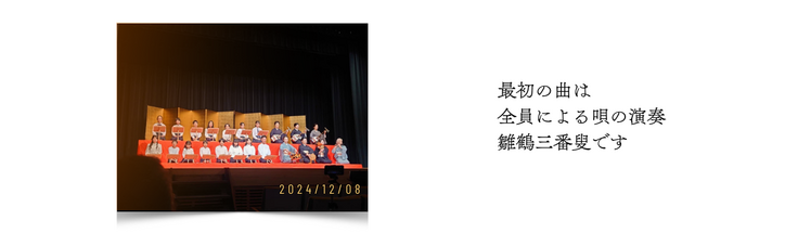 「供奴」「雛鶴三番叟」に加え「勧進帳」「土蜘」の唄の演奏と、