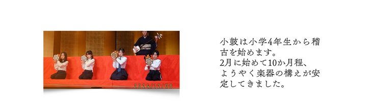 締太鼓や小鼓、能管と篠笛の演奏の12曲がこども達によって披露されました。