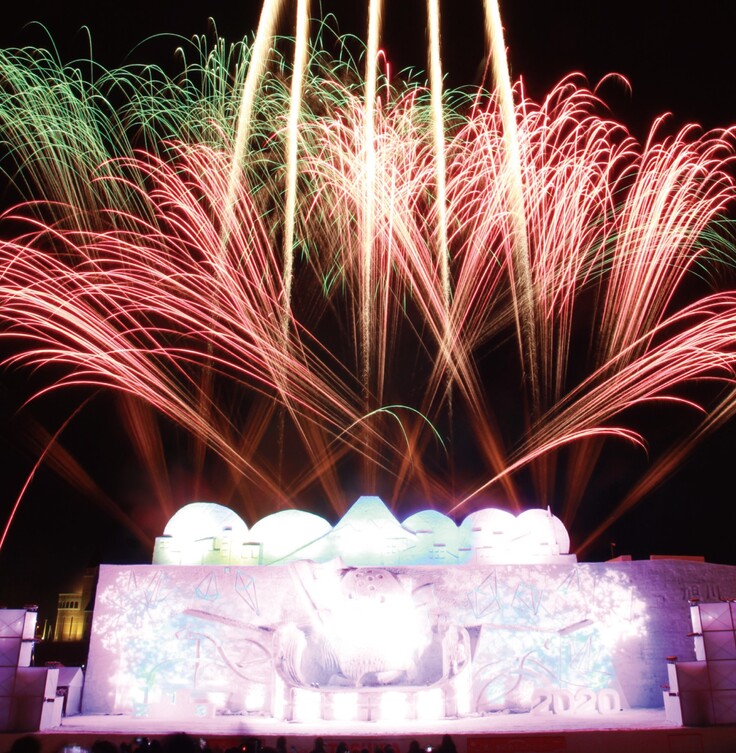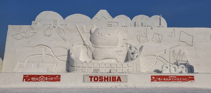 ここで「旭川冬まつり」についてご紹介します。 2月の平均気温が氷点下(氷のできる温度)と、厳しい寒さに包まれる旭川。暦の上では春が始まる“立春”を迎えた2月上旬、“雪と氷とあかりの祭典”をテーマに旭川冬まつりを開催しています。 豪雪地帯の旭川は、「ドアを開けると雪がいっぱい!」と、一晩で驚くほどの積雪も珍しくありません。そんな大量の雪を “困った~” “大変だ!” ではなく、子どもたちにも大人にも夢と希望のつまった、元気で力のある雪の像を作ろう!という声から、旭川冬まつりは始まりました。