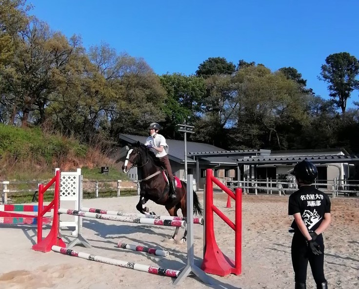 名大馬術部には、全国大会に出場している馬が沢山います。馬術は人の技術がもちろん大切ですが、どんな馬に乗るかも重要です。今名大馬術部にいる優秀な馬たちと一緒に、よりよい成績を目指し、活動していきたいです。