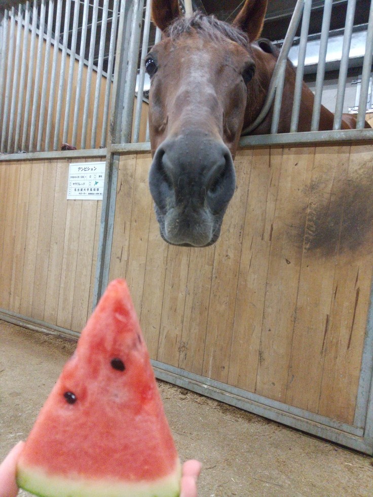 このツンデレ具合が部員にはたまらず、アンビは部の馬の中で一番おやつを貰っている子です。この世渡り上手さを私も見習いたいものです…