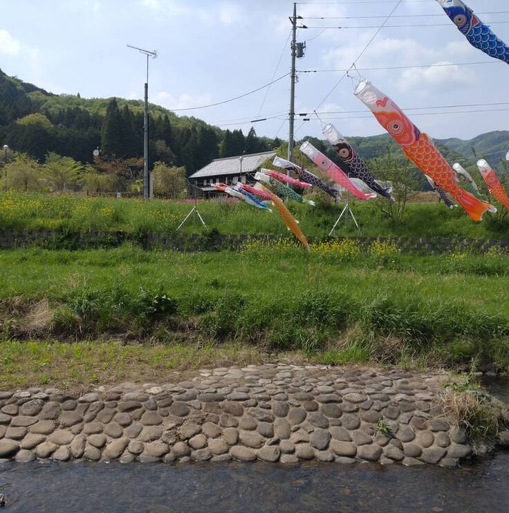 今は、ちょうど名草川にこいのぼりが泳いでいるので、それが目印です。