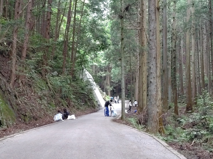 観光協会のメンバーは、側溝に詰まった枯れ枝・枯れ葉・土砂などをかき出しながら、お社付近まで登っていきます。これが結構な重労働なのですが、今日は子どもたちの元気な声が響き渡り、その声に励まされていつもより笑顔がこぼれます。
