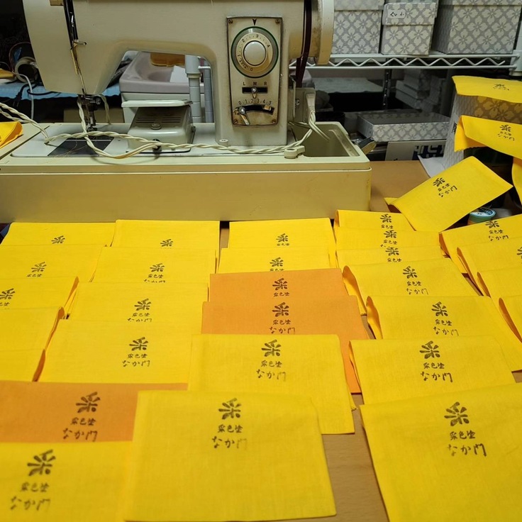 先日、長年使っているミシンが無事だったので出来上がった品物を入れる布袋を作成。