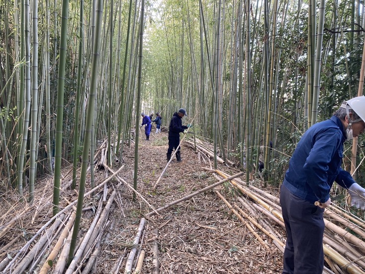 安堵町桜遊会のメンバーの方々にボランティアで竹藪整理に来ていただきました。