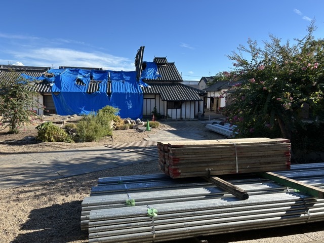 9月に入り、主屋全体を覆う素屋根建設工事が始まりました。別の場所で地質(ボーリング)調査が行われることになり、近いうちに現地調査が予定されています。