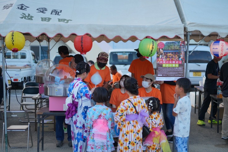 昨夜、小豆島町池田のイマージュセンター前広場で開催された第十回三世代ふれあい祭りに、中山自治会も参加してきました。