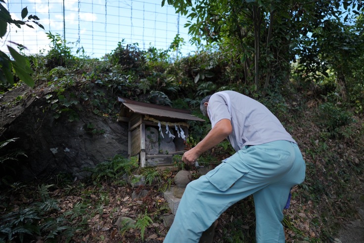 境内の小さな祠にももちろんしめ縄を飾ります。