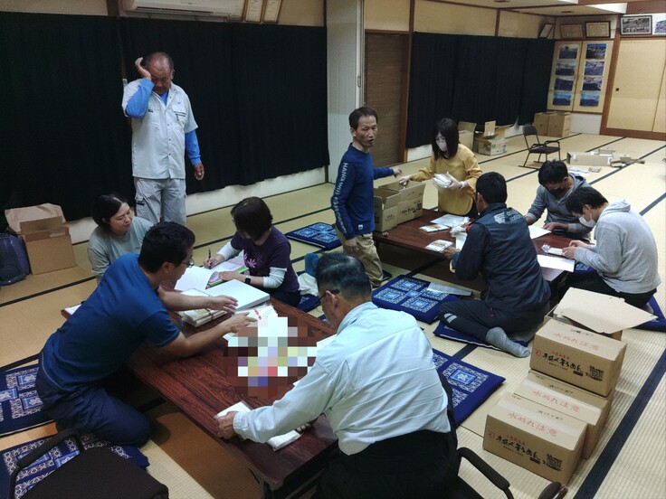 そうめん147セット。お米200セットのラベルをみんなで手分けして黙々と貼りつけていきます。メンバーの手際が良かったおかげで、あっという間に作業が終わりました。この後は、お米の精米が終わり次第、袋詰め作業を行う予定です。そして現在発注しているオリジナル手ぬぐいが届き次第、梱包を行い順次発送していく予定となっています。ですので、リターンのお届けは今しばらくお待ちください。