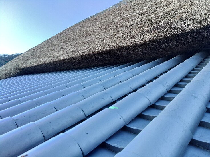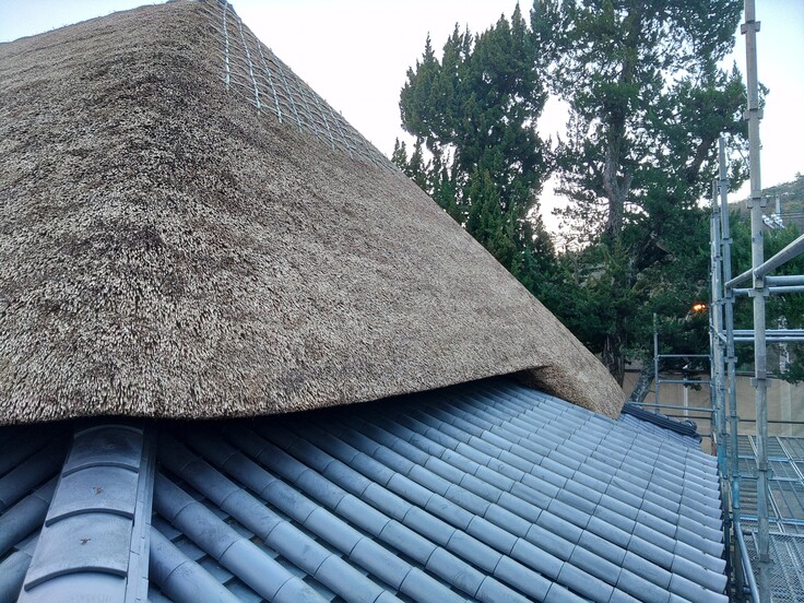茅葺屋根と瓦屋根の間も奇麗に揃えられています。
