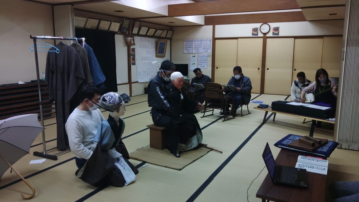 このシンポジウムで、中山農村歌舞伎保存会は、平成24年以来となるデコ芝居を上演する事になりました。デコ芝居とは、頭と胴体が人形。両手両足が人間(役者)というスタイルで行うお芝居です。言葉では説明が難しいのですが、歌舞伎と人形浄瑠璃と二人羽織をミックスしたような感じでしょうか?今回は、この難しいお芝居を中山農村歌舞伎の将来を背負って立つ若手役者三人が演じます。普段の歌舞伎とは勝手が違い、デコの扱いに悪戦苦闘しながらただいま猛練習中です。