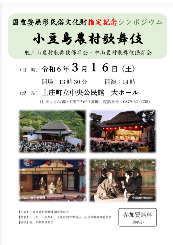 先日お知らせした通り、小豆島農村歌舞伎が、国重要無形民俗文化財に指定される見込みとなりました。それを記念して「小豆島農村歌舞伎シンポジウム」が開催されることになりました。